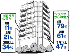 階が上がるほど玄関の侵入が多く、